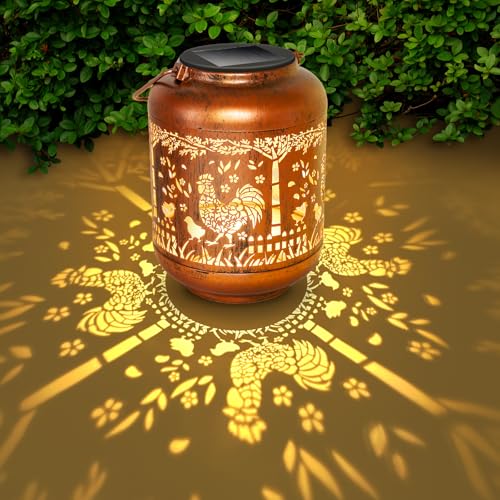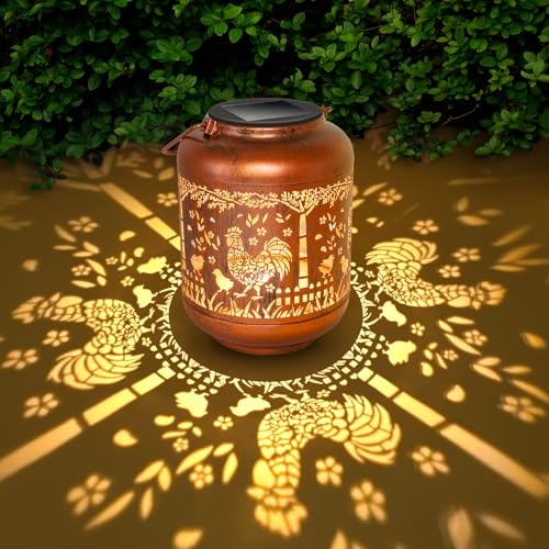 Solar Lanterns Outdoor Garden Decor,Chicken Gifts for Women, Mom, Grandma, Birthday, Thanksgiving, Decorative Waterproof Hanging Metal LED Light for Yard, Patio, Lawn, Landscape, Backyard (Rooster)