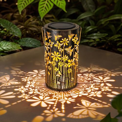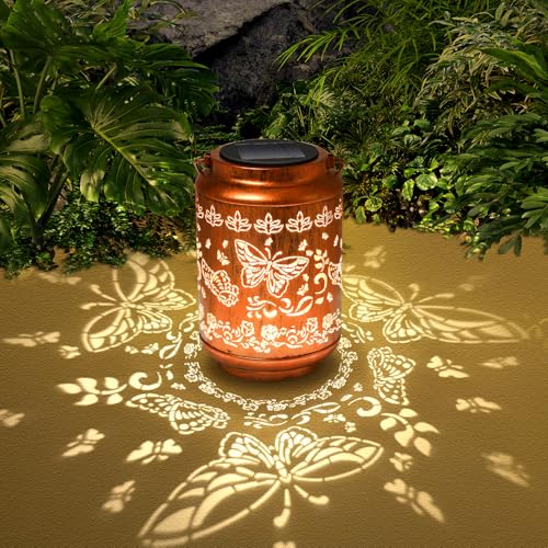 MIFXIN Butterfly Solar Lantern, Birthday Gift for Women, Metal Solar Lanterns Garden Ornaments Outdoor, Gift for Mum Grandma, Waterproof LED Light Garden Hanging Lights for Table Patio Balcony Yard