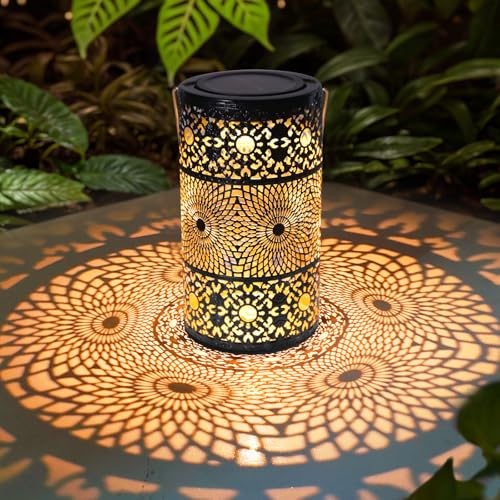 MIFXIN Rotating Solar Lantern, Birthday Gifts for Women, Metal Solar Lanterns Garden Ornaments Outdoor, Gifts for Mum Grandma, Waterproof LED Light Garden Hanging Lights for Table Patio Balcony Yard