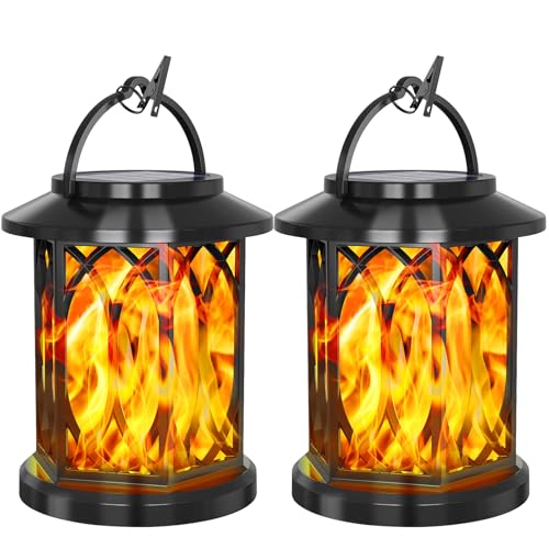 SMY Lighting Solar Lanterns for Outside Garden - 2Pack Hanging Solar Lanterns with Flickering Flame, Waterproof IP65 Garden Lanterns Solar Powered & Auto On/Off for Pathway Patio Decoration