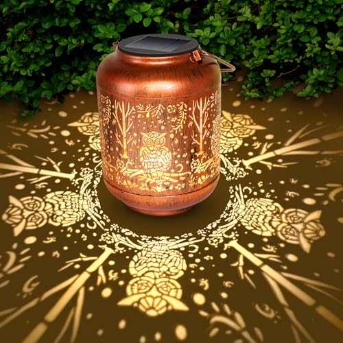 Owl Solar Lanterns Outdoor Garden Ornaments, Owl Birthday Gifts for Women Her Decorative Waterproof Metal Hanging Light for Yard, Patio, Lawn, Backyard,Mum Gifts for Mother