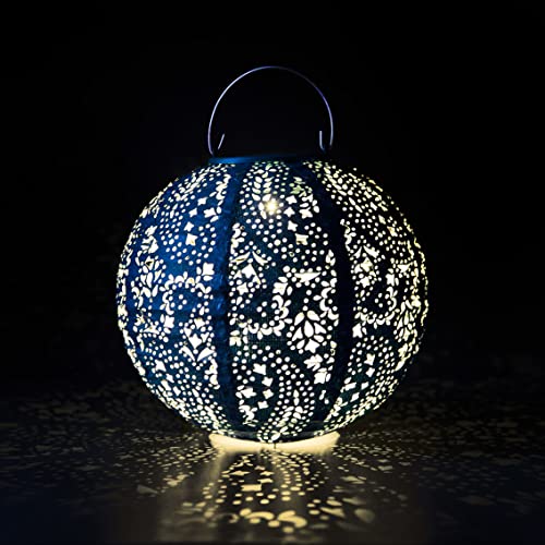 Talking Tables 2 x Navy Solar Lanterns for The Garden Décor, Patio | Boho Moroccan Outdoor Hanging Lights Battery Powered | Cast Shadow Patterns - Birthday for Her Made from Tyvek