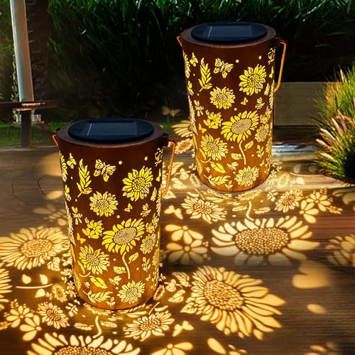 MIFXIN 2 Pack Sunflower Solar Lantern, Birthday Gifts for Women, Metal Solar Lanterns Garden Ornaments Outdoor , Waterproof LED Light Garden Hanging Lights for Table Patio Balcon