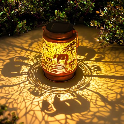 Solar Lanterns Outdoor Garden Decor, Gifts for Women, Mom, Grandma, Birthday, Thanksgiving, Decorative Waterproof Hanging Metal LED Light for Yard, Patio, Lawn, Landscape, Backyard (Elephant)