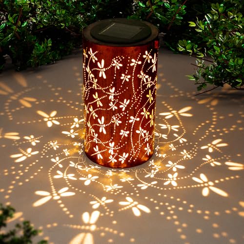KOOPER Birthday Gifts for Women, Dragonfly Garden Ornaments Outdoor Hanging Solar Lanterns, Metal Garden Solar Lights Perfect Dragonfly Gifts Presents Mothers Day Gifts for Women Mum Grandma