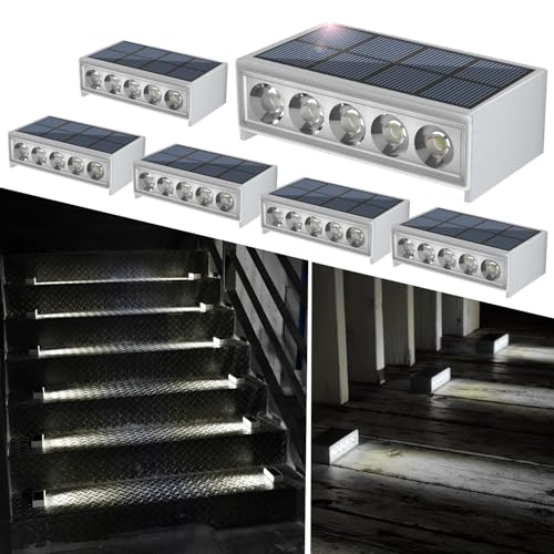 NATPOW Solar Step Lights Outdoor Garden, Dusk Till Dawn Outdoor Lights Cool White Stair Lights, IP65 Waterproof Pathway Lighting, Solar Ground Light for Stair Garden Step Deck Patio Front Door 6 Pack