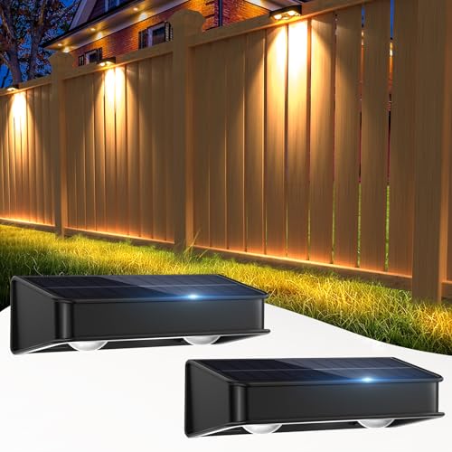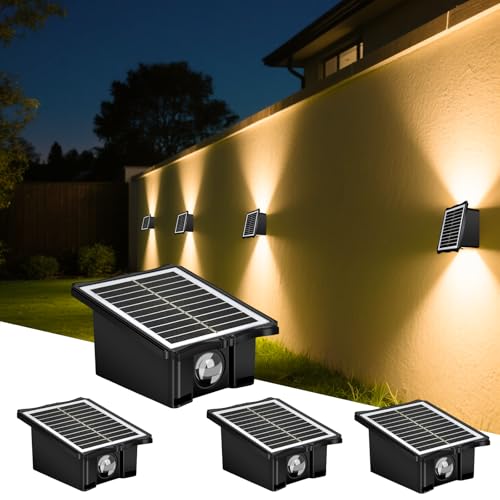 4Pack Solar Fence Lights Outdoor Garden, Up and Down Wall Lights with Auto On/Off, IP65 Waterproof Solar Wall Light, Warm White Solar Powered Fence Light for Driveway/Deck/Patio