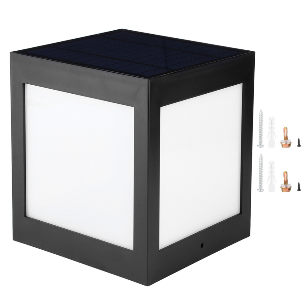 Outdoor Post Lights Solar Powered LED Square Post Deck Pillar Lamp Waterproof Square Column Patio Garden Pedestal Lighting