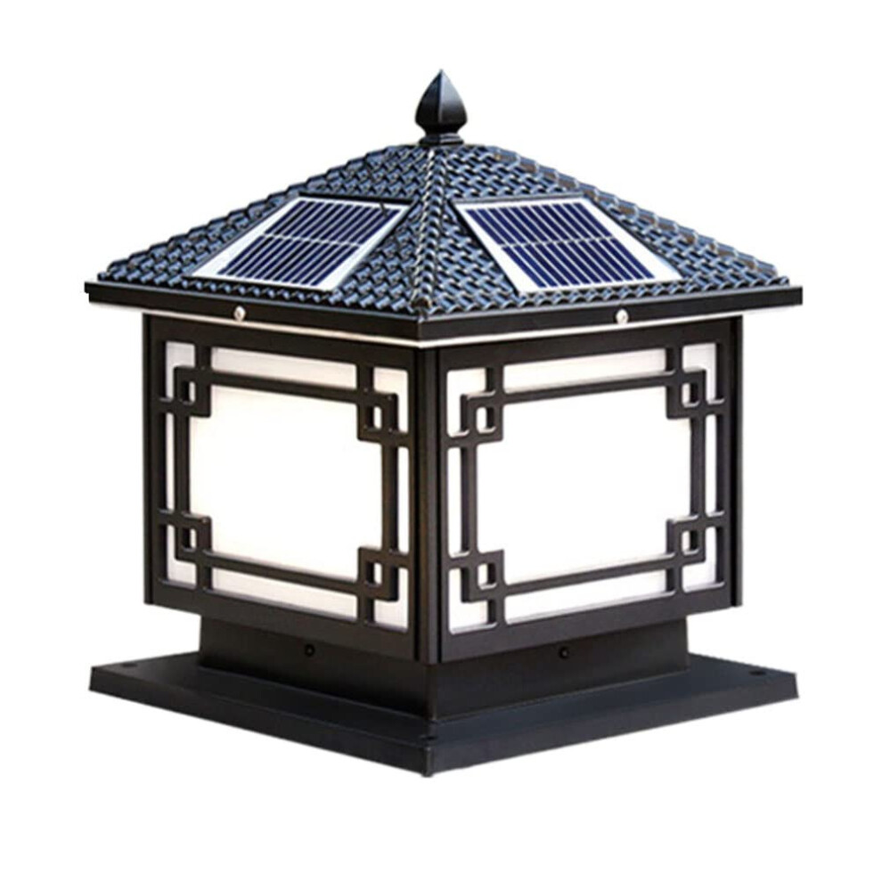 Solar Post Lamp Chinese Style Outdoor Column Light, Remote Control FourColor Lighting, Fits 4x4/5x5/6x6 Wooden Posts
