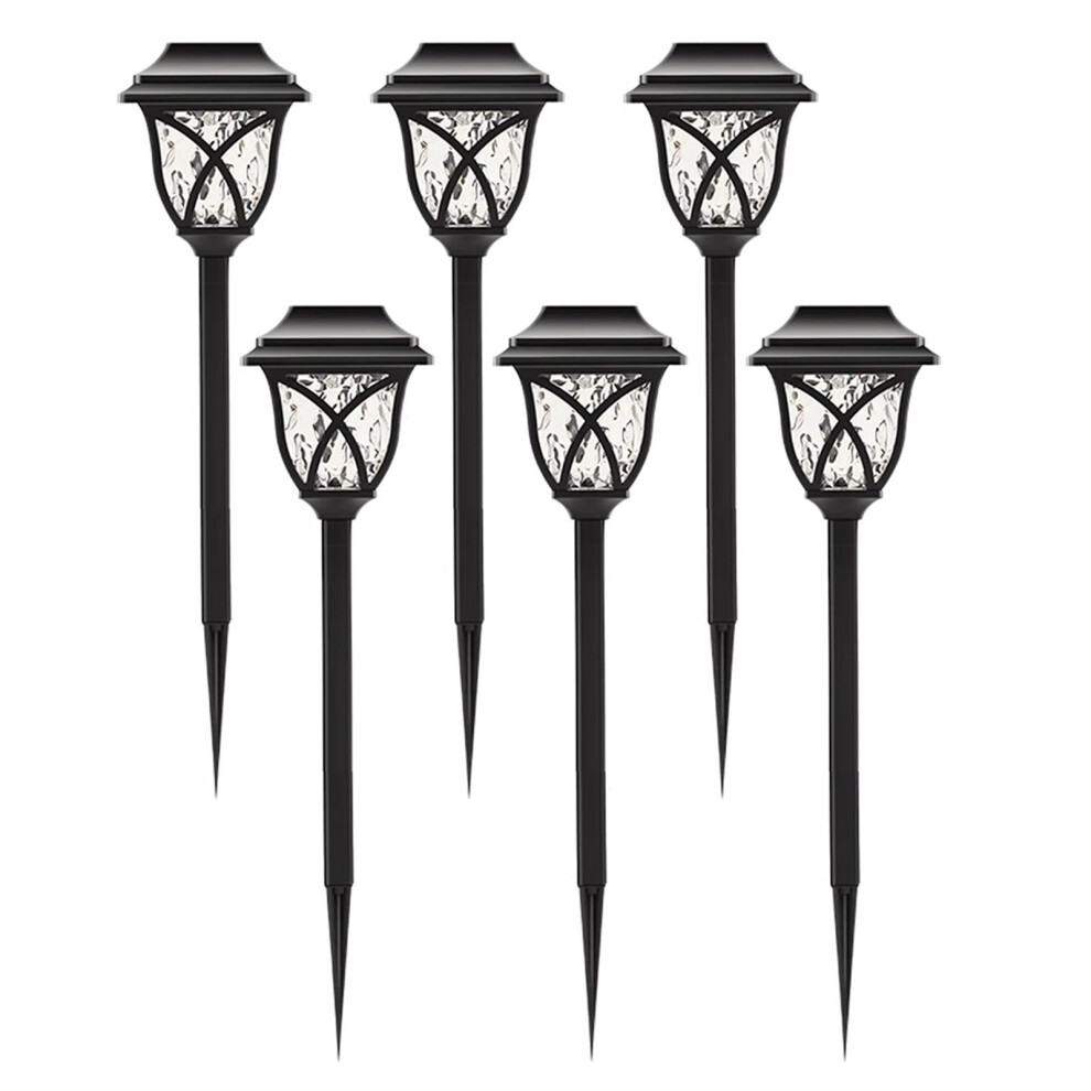 Vintage Solar Pathway Lights LED Lamp Post Waterproof Stake Lighting For Patio Garden Lawn Warm Yellow Light 6 Pack