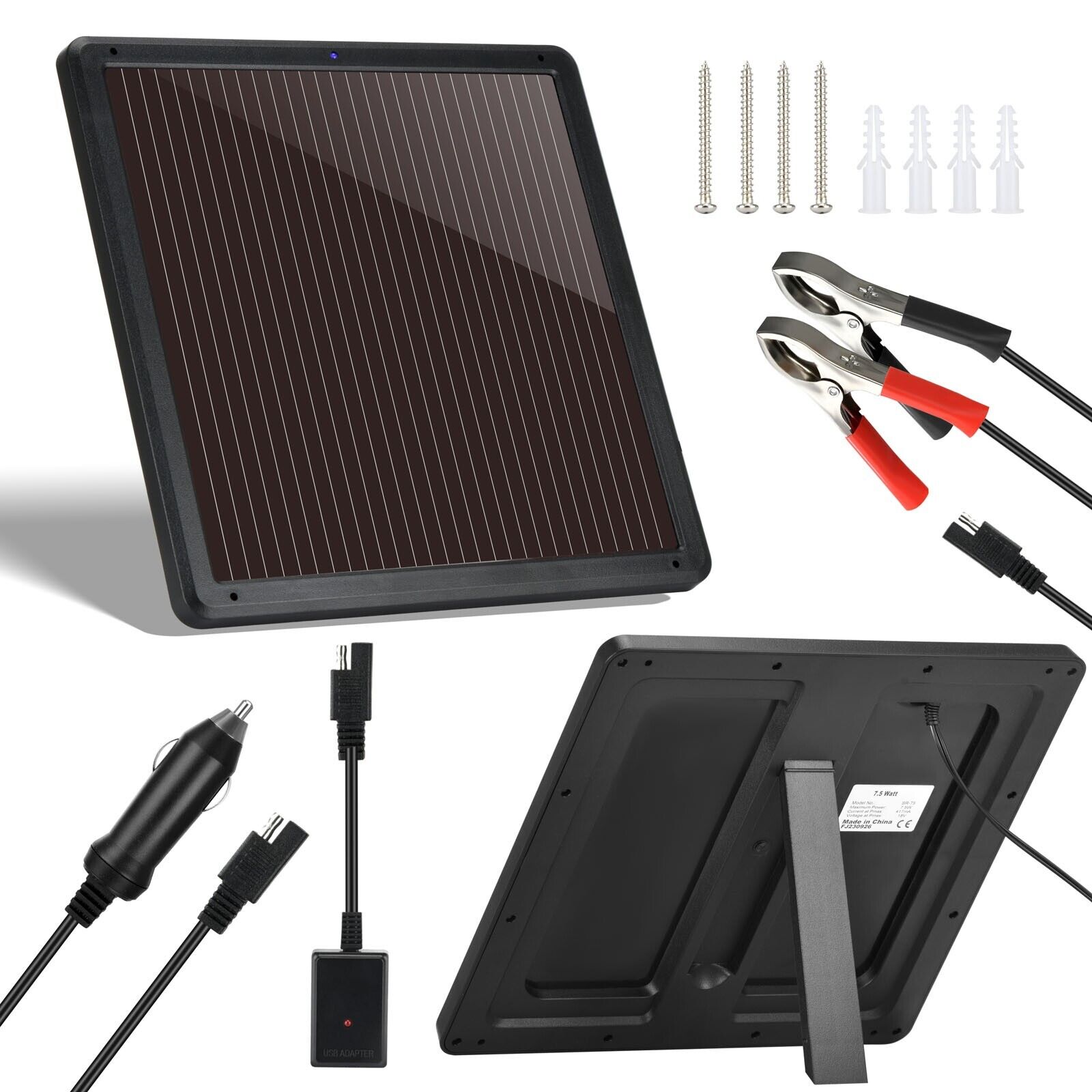 Xtremeauto 7.5W Solar Battery Trickle Charger & Maintainer – Waterproof 12V Solar Panel Charging Kit with Premium Cells – Portable for Car, Boat, Motorcycle, ATV, RV, Tractor, Marine