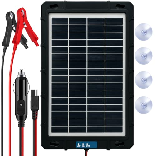 Luobannm Solar Battery Trickle Charger Maintainer 12V Waterproof Solar Panel Maintenance Kit for Automotive for Car Boat Applications