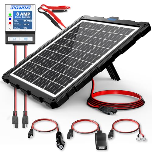 POWOXI-Upgraded-20W-Solar-Battery-Charger-Maintainer, External Smart 3-Stages PWM Charge Controller, 12V Solar Panel Trickle Charging Kit for Car, Marine, Motorcycle, RV, etc