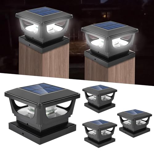 GEYUEYA Home Solar Post Lights,Solar Post Cap Lights Fence Post Lights Outdoor for 3x3 4x4 inch Wooden Posts Deck Cap Garden Yard Decoration-4 Packs