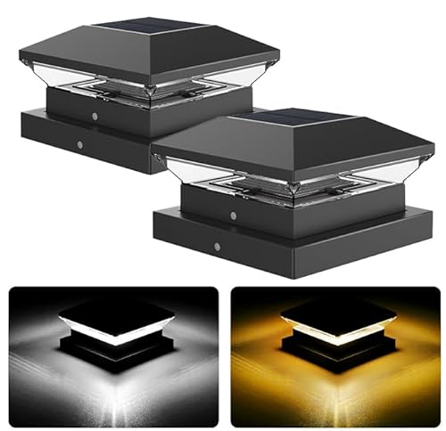 NATPOW Solar Post Lights, Solar Garden Lights Warm White & Cool White Fence Post Light, Auto On/Off Garden Post Cap Lamp IP65 Waterproof for Wooden Posts, Park Squares, Courtyards, Fence(2 Packs)