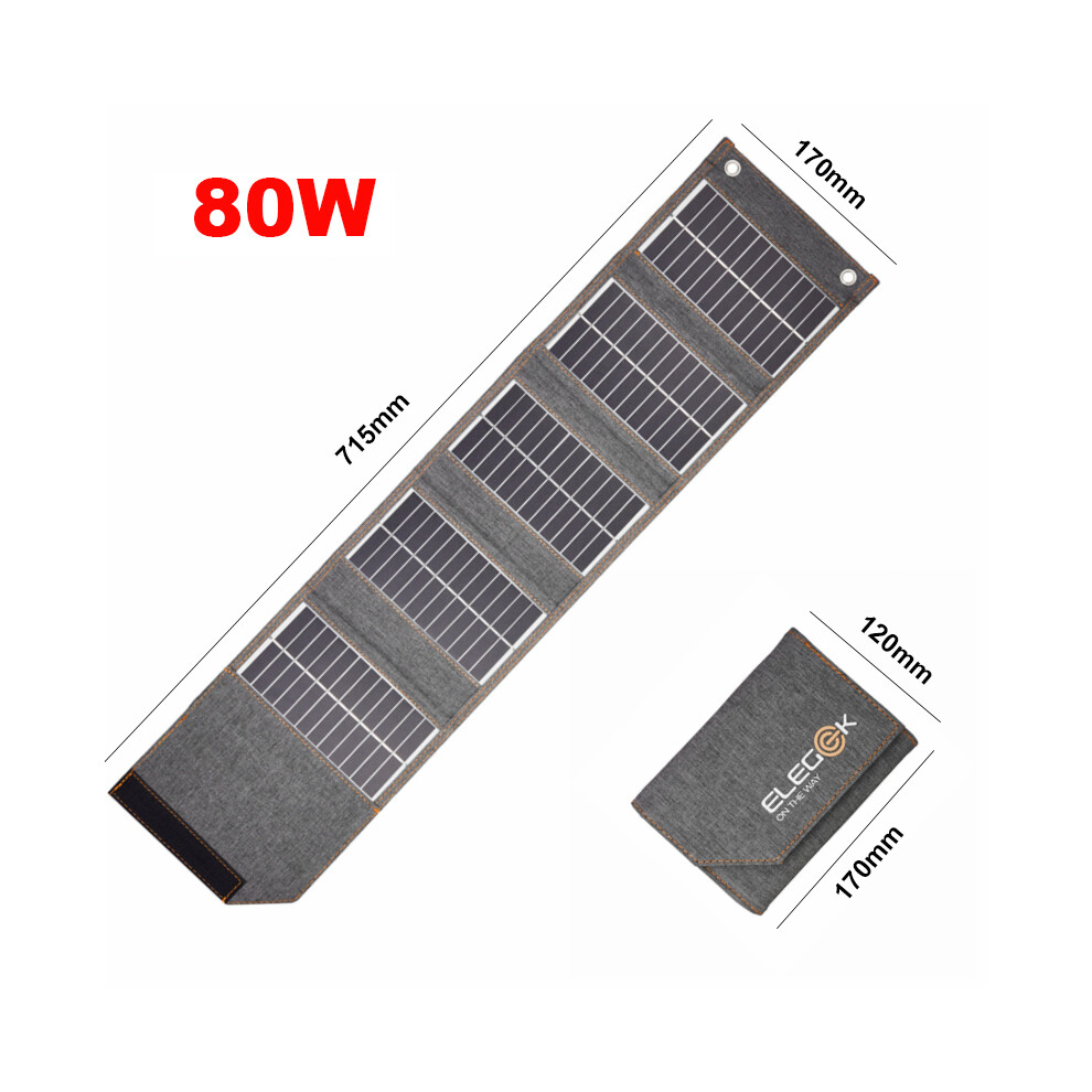 (80w Black) 80W Portable Foldable Solar Panel with USB 5V Waterproof Solar Panel for Cell Phone Power Bank Battery Charger Camping