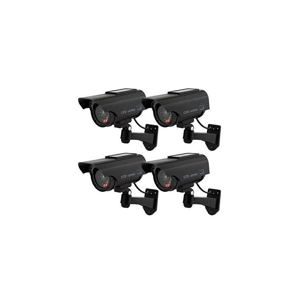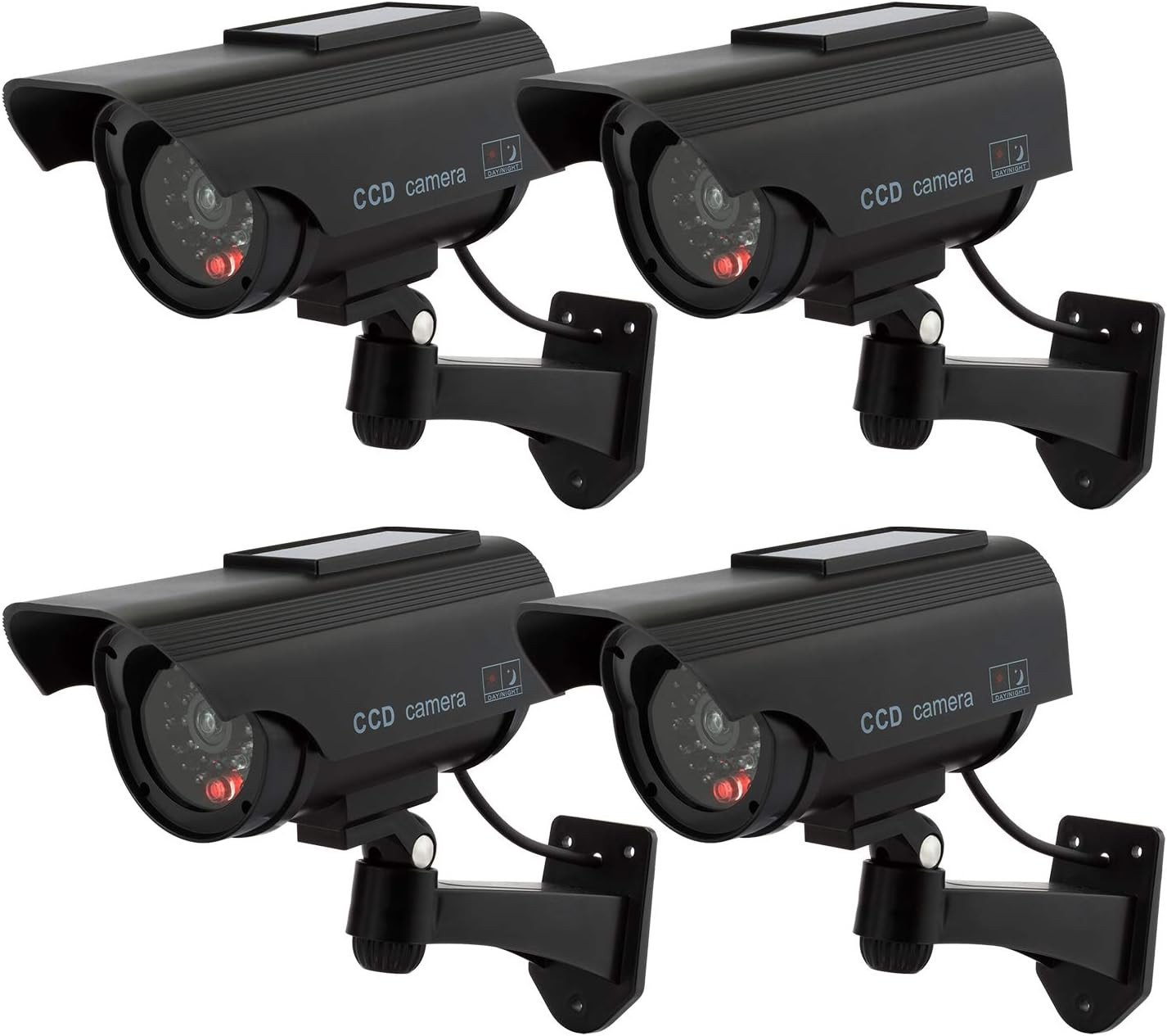 Hengu Bullet Dummy Fake Security CCTV Solar Powered Camera Simulation Monitor with LED Blinking Light, Outdoor Indoor Use for Homes & Business, 4 Pack