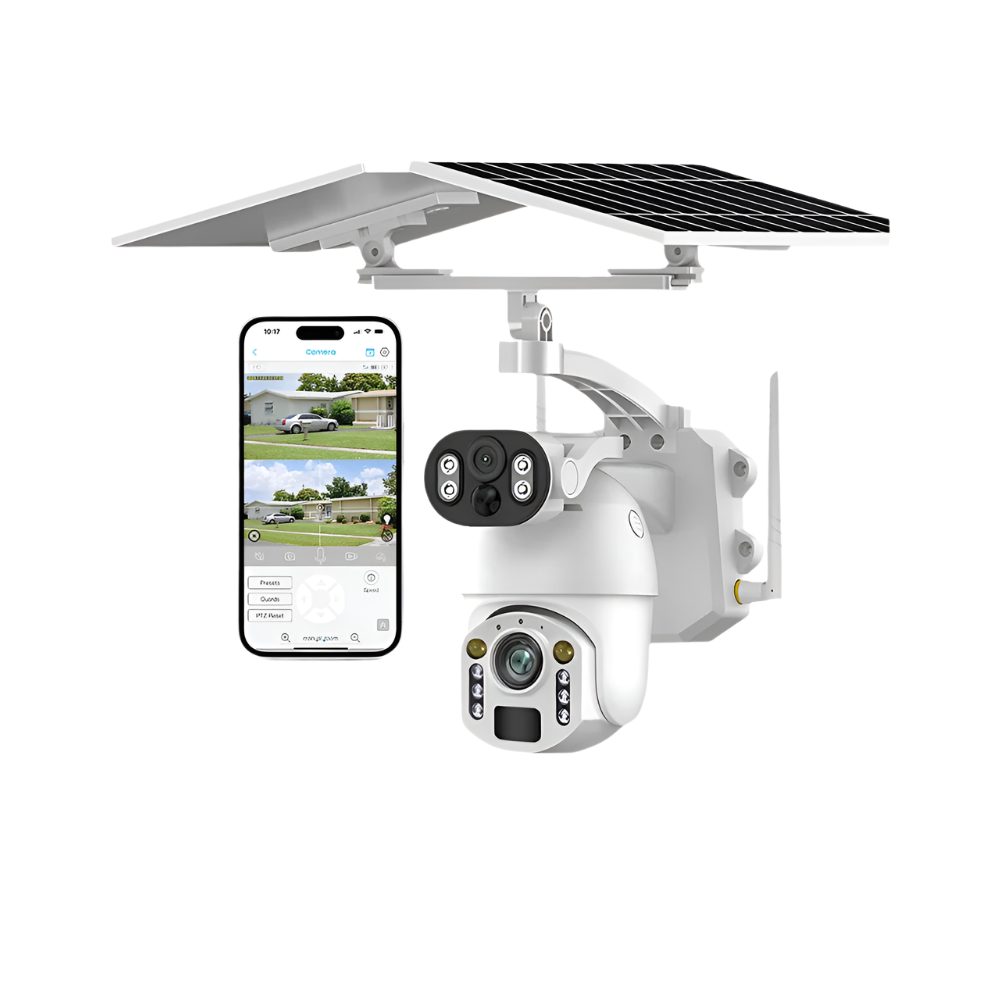 Unentngt 4K Solar-Powered CCTV Camera with 50x Optical Zoom, Dual Screen, Auto Tracking, 4G SIM & WiFi Connectivity