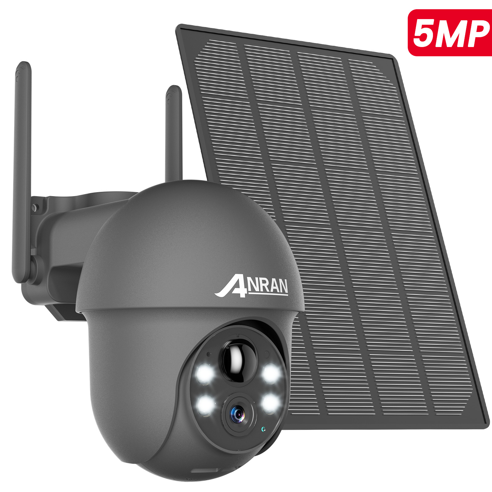 ANRAN 5MP Security Camera Outdoor, 360° PTZ Solar/Battery Powered WiFi CCTV Home Camera, Motion Detection, Real-time Alerts, Color Night Vision, 2-Way Talk, Work with Alexa, 2.4GHz WiFi, Q01 Max Grey