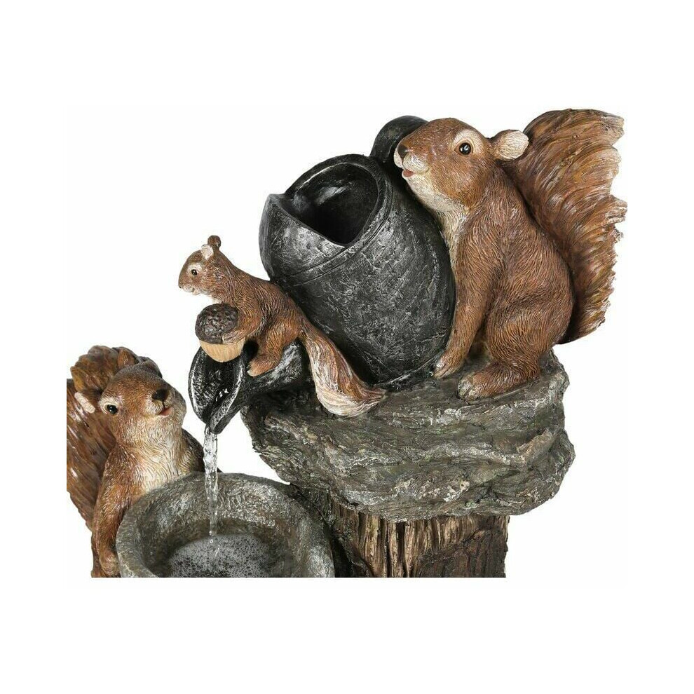 Solar Fountains for Outdoor Garden, Duck Water Fountain Statue with LED Lights, Solar Powered Water Feature with Squirrel Pouring Water and Bird at