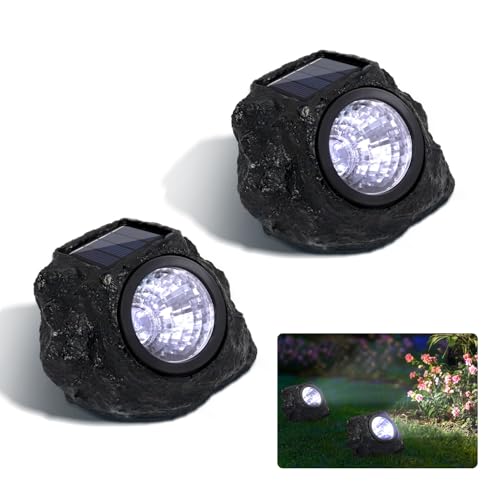EXTRASTAR Solar Stone Lights Outdoor, 6500K Cool White, IP44 Waterproof Solar Powered Garden Lights, Decorative LED Landscape Lighting for Patio, Yard, Pathway (Pack of 2)
