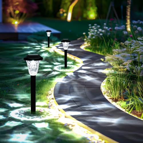 GIGALUMI Solar Lights Outdoor Garden, 8 Pack Solar Outdoor Lights, Waterproof Solar Powered Garden Lights for Pathway Patio Lawn Walkway and Landscape Cold White