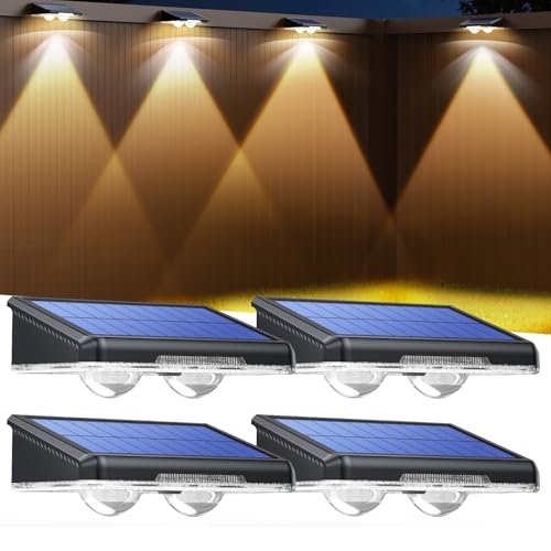 vighep Solar Fence Lights Outdoor Garden, 4Pack Wall Light Outdoor Waterproof, Ultral Bright Solar Powered Garden Fence Lights for Outside Backyard,Patio,Pathway,Yard (Warm White)