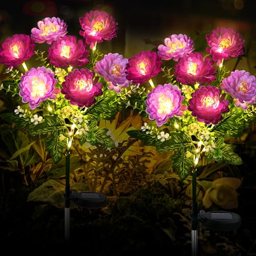 FWLWTWSS Solar Lights Outdoor Garden - 2 Pack Snow Lotus Solar Garden Lights, Garden Lights Solar Powered Waterproof with 7 Small Snow Lotus Flowers, Garden Ornaments Outdoor (Purple)