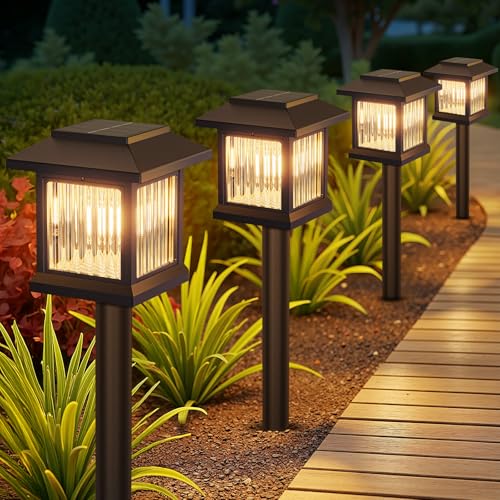 KOOPER Solar Lights Outdoor Garden, 4 Pack Upgraded Garden Lights Solar Powered Waterproof, Auto On/Off Solar Lights Garden Ornaments Outdoor for Yard