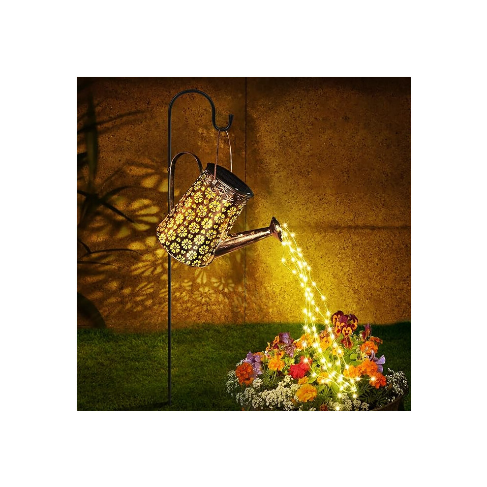 Watering Can Garden Ornaments Outdoor Solar Lights Solar Powered Fairy 36 LED Waterproof Star Shower Unusual Gardening Lamps for Yard Warm White