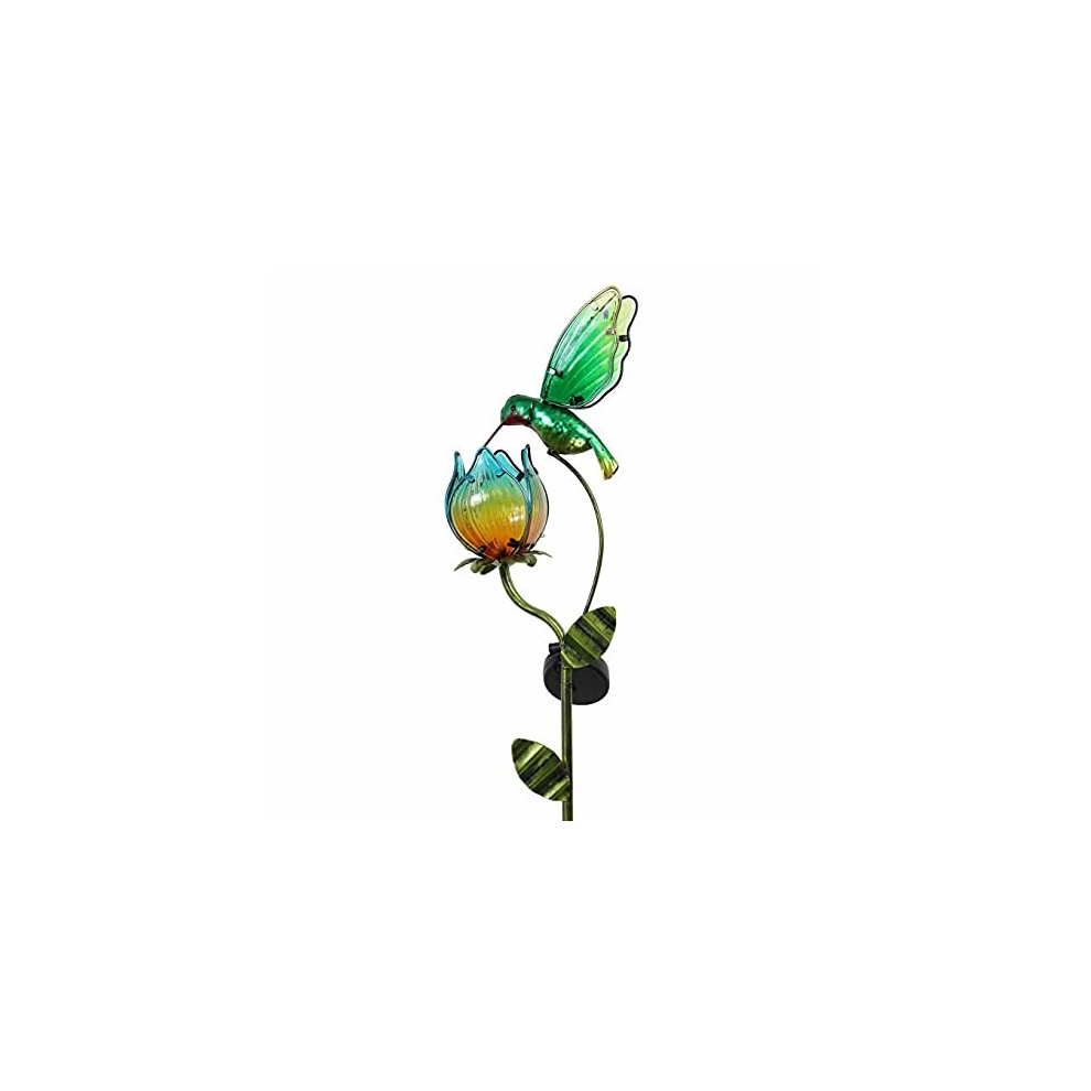 Garden Ornaments Outdoor for Garden Gifts, 41inch Metal Hummingbird Tulip Solar Stake Lights, Glass Flower and Bird Solar Powered Lights for Garden