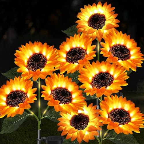 SHAREMI Solar Lights Outdoor Garden Ornaments, 3 Pack Solar Powered Waterproof Garden Light with 9 Artificial Sunflowers for Yard Pathway Lawn Decorations, Birthday Christmas Lights Gardening Gifts