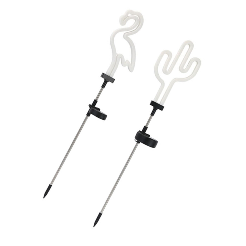 Solar Garden Cactus Flamingo Stake Lights TwoPiece Outdoor Neon LED Pathway Decor, Solar Powered Garden Ornaments