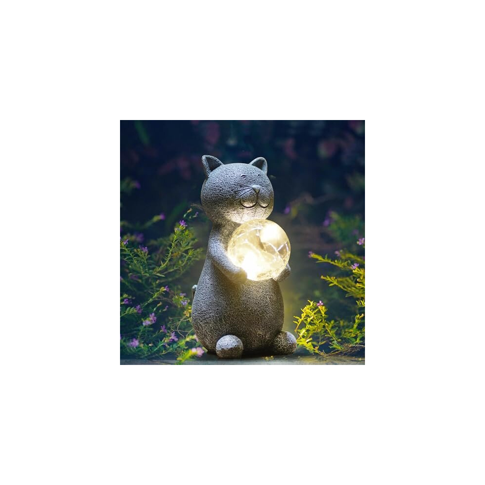Cat Statue Garden Ornaments Solar Powered LED Lights, Outdoor Garden Cats Figurine With Gazing Solar Ball Cat Decoration For Patio Lawn Yard Decor