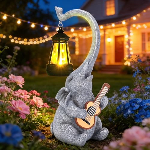 RICHIE Elephant Statue Garden Ornaments Art Outdoor Decoration with Solar Powered LED Lights Decor for Patio,Balcony,Yard, Mum Birthday Gifts,Garden Gifts for Women