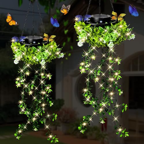 KagoLing Solar Lights Outdoor Garden, 2 Pack Hanging Artificial Plants 66 LED Fairy Lights, IP65 Solar Powered Waterproof Ornaments Outdoor, Gifts Birthday for Women Mum Grandma