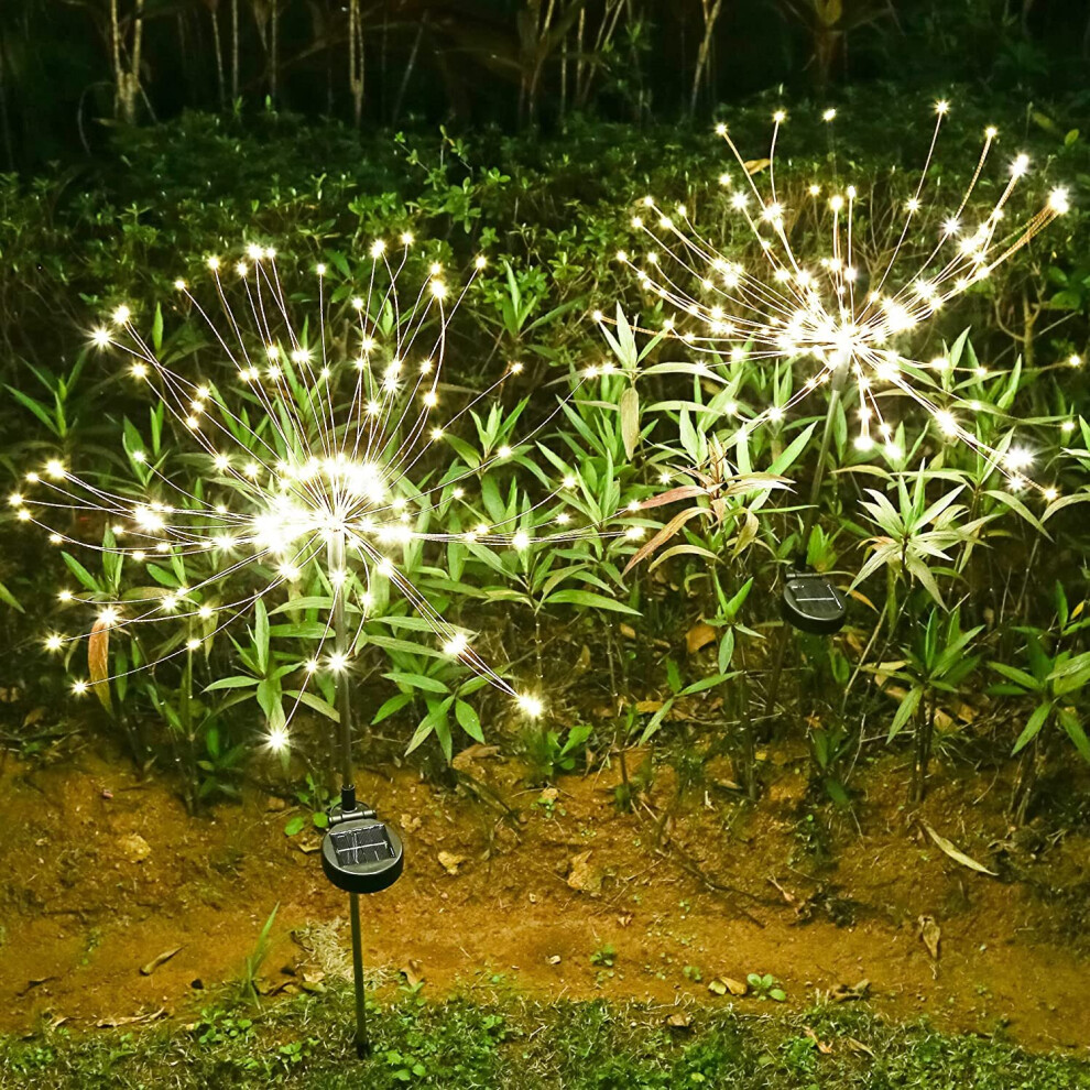 yowin Solar Lights Outdoor Garden 2 Pack 120 LED Firework Stake Lights, 8 Modes Starburst Fence Light Solar Powered IP65 Waterproof Garden Ornaments