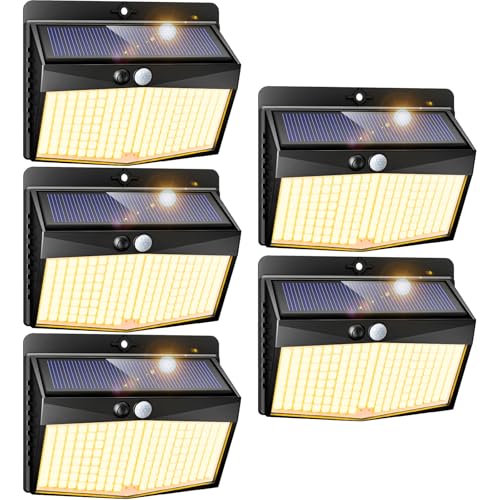 Peasur Solar Lights Outdoor Garden, 168LED 5 Pack Solar Powered Security Lights Outdoor Motion Sensor with 3 Modes, IP65 Waterproof Fence Lighting for Wall Outside-Warm White