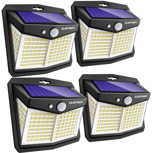 CLAONER Solar Powered Lights Outdoor, Upgraded Wireless 270° IP65 Solar Motion Sensor Security/Wall Light for Front Door, Yard, Garage, Garden, Cool White (4 Pack)