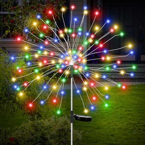 Solar Lights for Garden Decoration,Christmas 150 LED Fairy Light Solar Powered Starburst Lights Outdoor Firework Decorative Lamp Pathway Lighting 8 Different Modes Waterproof Colored 1 Pack