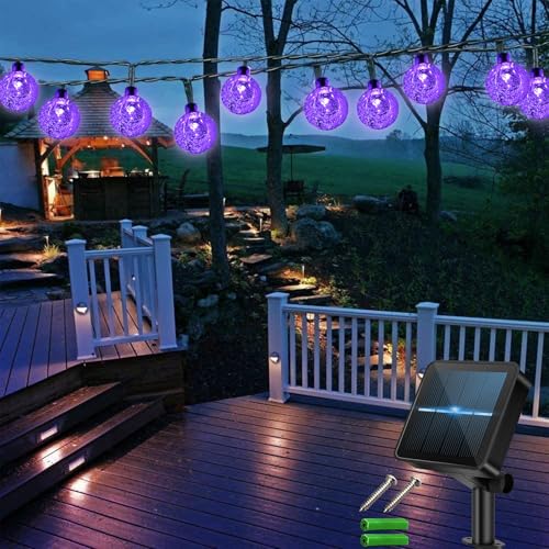 Daodao Solar Powered Outdoor String Lights, 7M 50LED Solar Garden Lights, 8 Modes Waterproof Solar Fairy Lights for Patio Wedding Party (Purple)