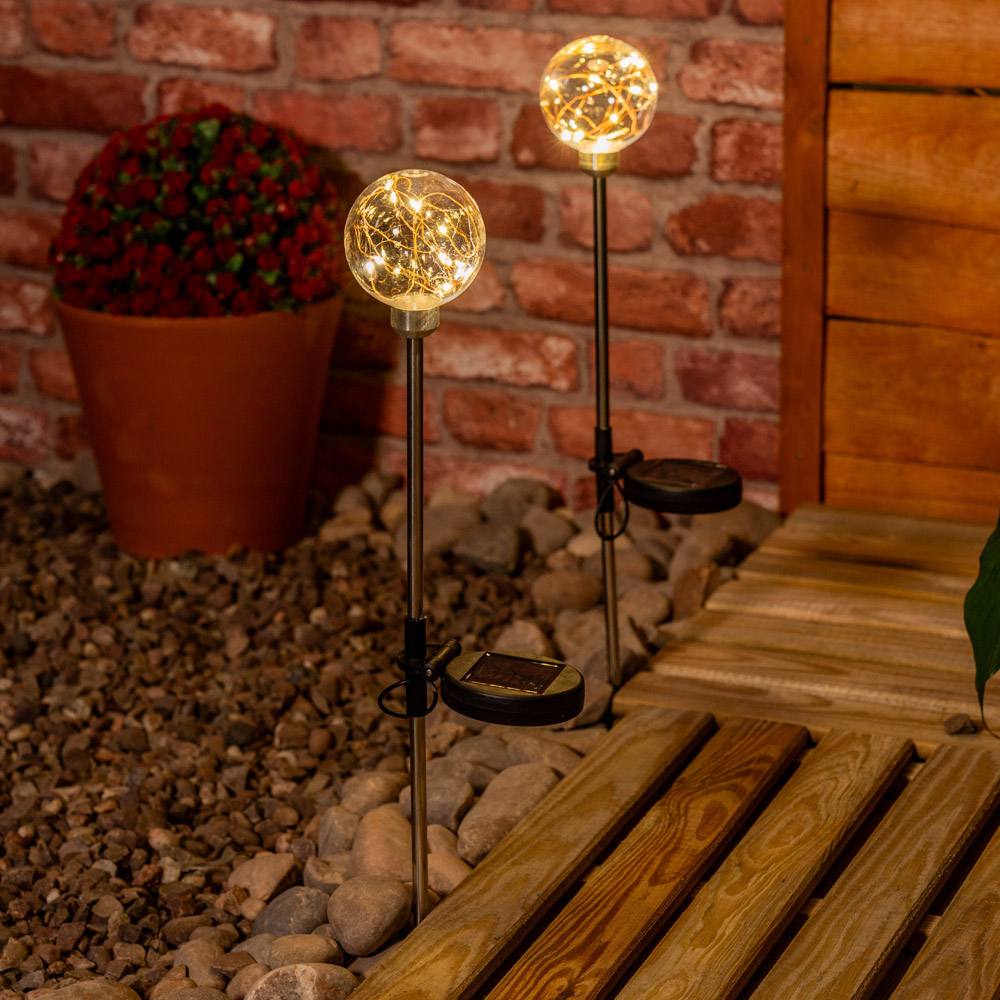ValueLights Fairy Globe Solar Powered Outdoor Spike Lights 2 Pack Garden Stake Lamp in Clear