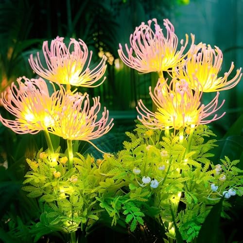 Hqynss Solar Garden Lights, 2 Pack Upgraded Flowers Lights with Glowing Flowers & Stems, IP65 Waterproof Solar Powered Outdoor Lights for Garden Yard Pathway Patio Wedding Decorations