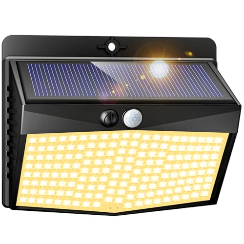Peasur Solar Lights Outdoor Garden, 168LED Solar Powered Security Lights Outdoor Motion Sensor with 3 Modes, IP65 Waterproof Fence Lighting for Wall Outside-Warm White