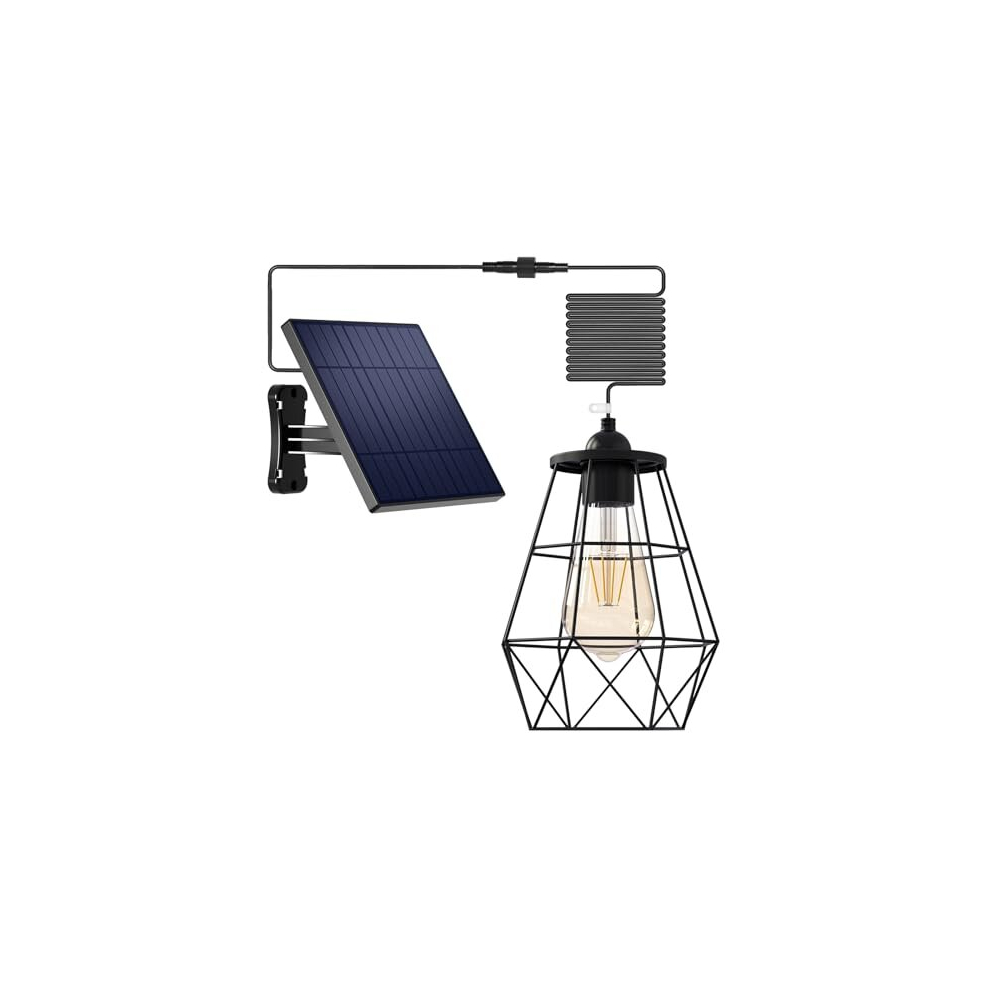 Metal Shade Solar Powered Pendant Light E27 Bulb Outdoor Hanging Shed Lamp for Home Garden
