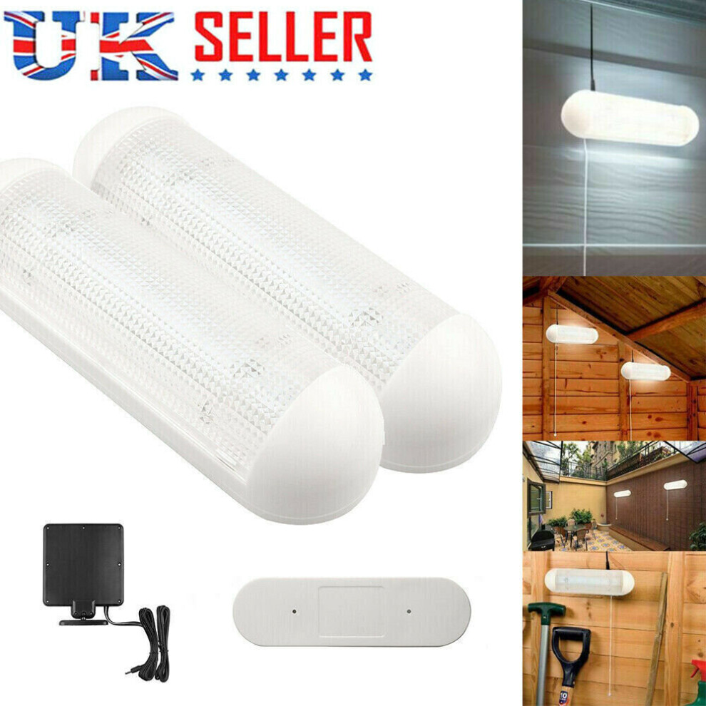 2x Solar Powered LED Light Rechargeable Garage Shed Light Garden
