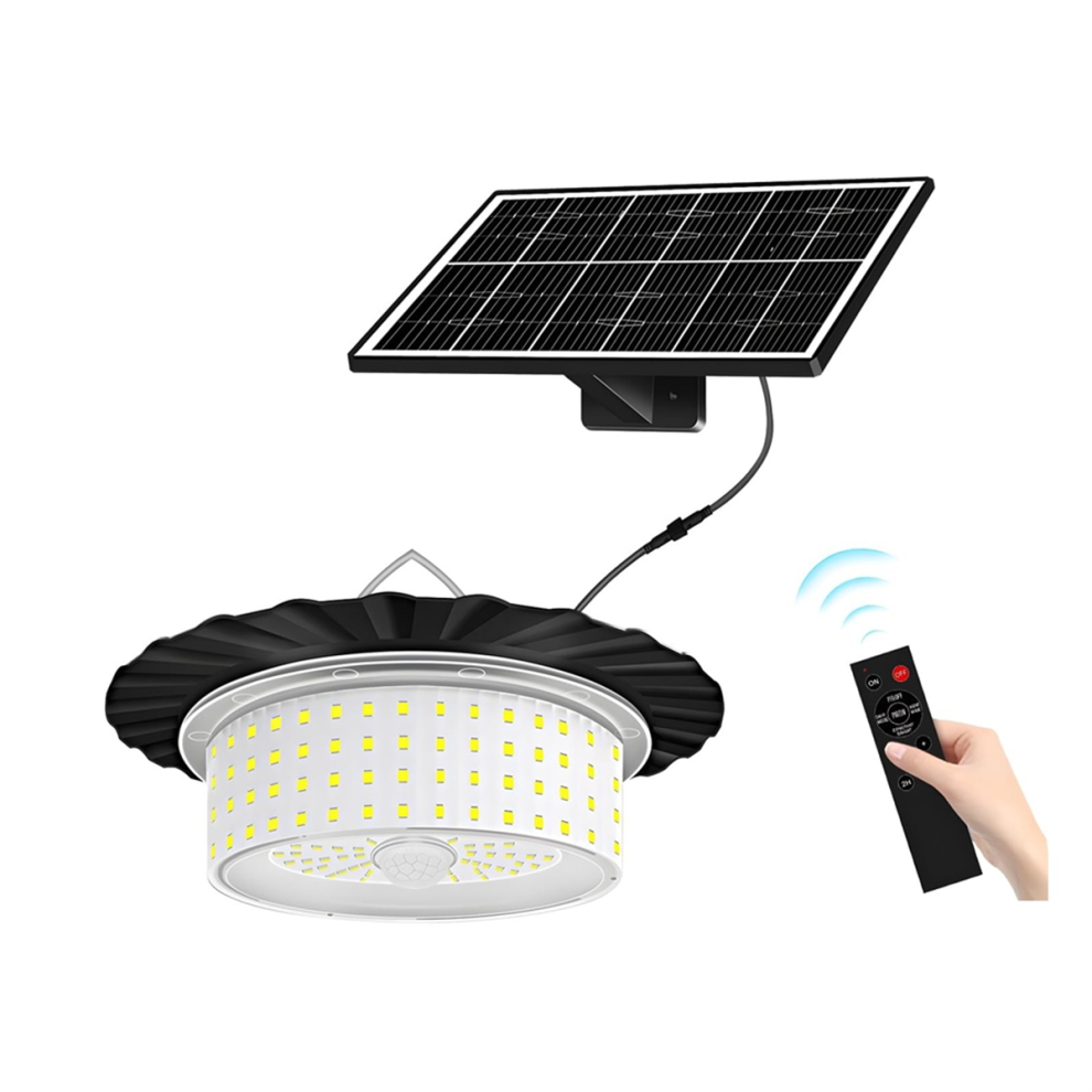 FabStyl Solar Shed Light Indoor & Outdoor Motion Sensor,3 Color Temperature, Gazebo Pendant Light Solar Powered with Remote Control 5 Modes IP65 Waterproof for Garage Garden Warehouse Patio Umbrella