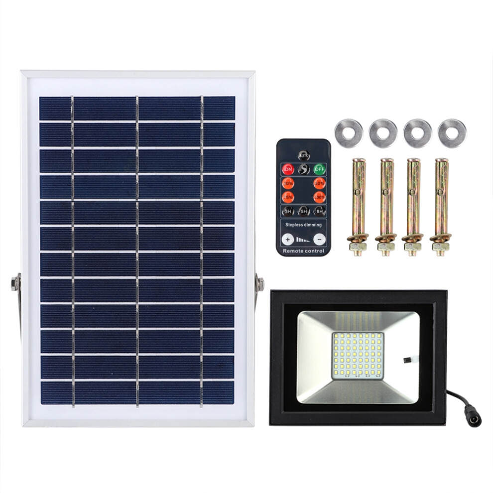 Solar Powered Flood Light Outdoor Remote Control Super Bright Auto On Off Waterproof IP66 Energy Saving Security Light Long Runtime For Shed Barn Pati