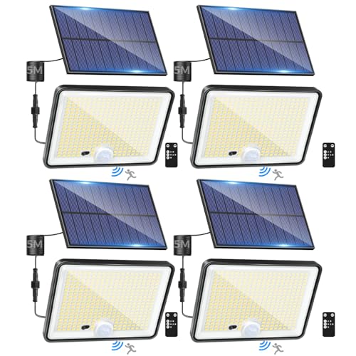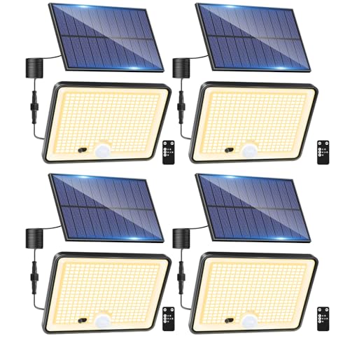 LOTMOS 4 Pack Solar Lights Outdoor, 342LED Remote Solar Security Lights Outdoor Motion Sensor, 3 Modes Waterproof Garden Solar Powered Pir Flood Lights for Yard Shed Garage Outside,Warm White