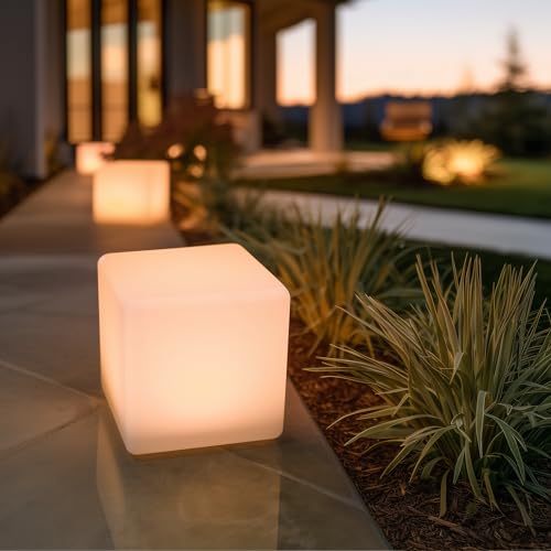 Shapelights® Indoor Outdoor USB Chargeable Solar Powered Colour Changing Mood Lights (Cube 30cm)